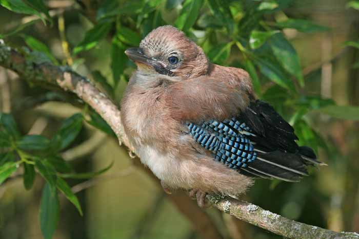 Auch der Eichelhäher brütet regelmäßig im Umfeld des Sees. Junge Eichelhäher sind allein schon durch ihres blaues Flügelfeld leicht ihren Eltern zuzuordnen. Auch sie werden nach dem Ausfliegen noch einige Tage gefüttert und machen dabei durch ihre Bettelrufe besonders auf sich aufmerksam.