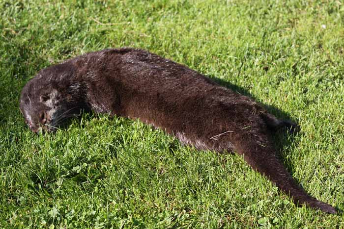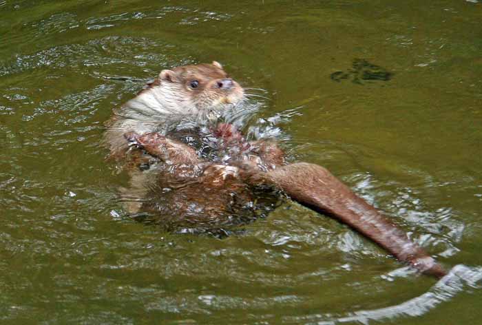 Fischotter mit angeschwemmten Karpfen