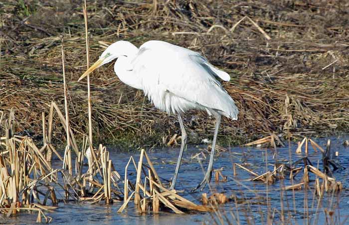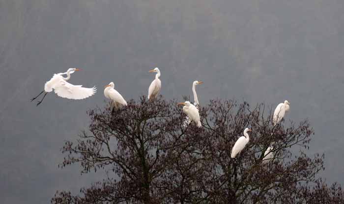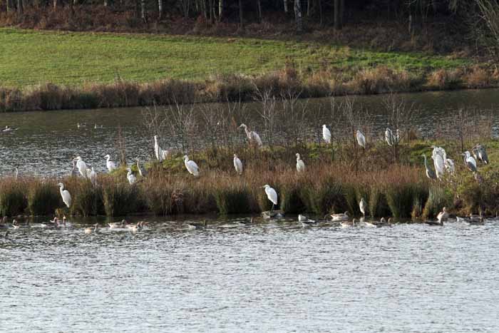 Alljährliche Gäste und auch oft in größerer Anzahl überwinternd sind die unverwechselbaren weissen Silberreiher. Sie sind meistens im Bereich der Ökozone und im Wiesenbrütergebiet vornehmlich beim Mäusefang zu beobachten. Längere Frostperioden verschneite und überfrorene Wiesen führen aber öfter immer wieder zum Verhungern der Wintergäste, wenn sie den frühzeitigen Abflug verpassen.