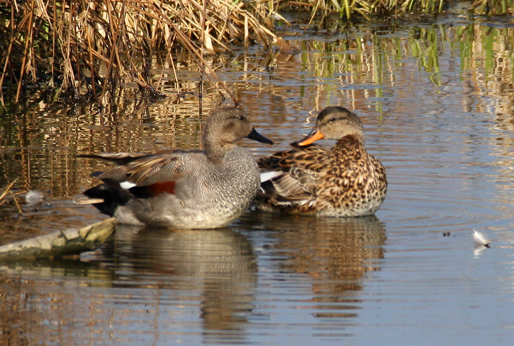 Eine große Hilfe beim Bestimmen von Entenarten ist dabei schon das Wissen um den Unterschied zwischen Schwimmenten, auch Gründelenten genannt und der Gruppe der Tauchenten. Gründelenten, zu denen auch die Stockente gehört tauchen meist nur mit dem Kopf unter Wasser, um am Boden zu "gründeln" und hier nach pflanzlicher und tierischer Nahrung zu suchen. Ganz typisch für Gründelenten ist dabei auch dass beim Schwimmen die Schwanzfedern sich über dem Wasser befinden. Gründelenten können übrigens ohne Anlauf direkt vom Wasser auffliegen.