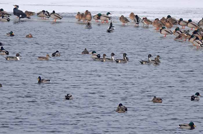 Wer derzeit als Besucher am See unterwegs ist kann auf den eisfreien Flächen oft eine große Anzahl von Wasservögeln, vor allem von Enten beobachten. Über 16 verschiedene Entenarten hat Heribert Mühlbauer bisher schon rastend, nahrungsuchend oder brütend entdecken können. Dabei ist es nicht immer leicht, die Geschlechter vornehmlich in ihren Schlichtkleidern zu erkennen und zu bestimmen.