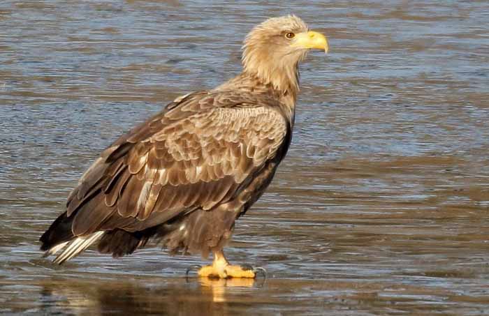 Unübersehbar und faszinierend präsentieren sich auch in diesem Winter, vornehmlich in der Ökozone des Drachensees, wieder die Seeadler. Ihr Erscheinen sorgt immer für große Aufregung unter der übrigen Vogelwelt.  Plötzlich aufliegende Vogelschwärme deuten meist auf die Anwesenheit des Adlerpärchens hin. Derzeit hält sich aber gelegentlich noch ein weiterer Jungadler am Drachensee auf und geht hier auf Nahrungssuche. Unterscheiden kann man ihn von den erwachsenen Adlern leicht, da da diese weiße Schwanzfedern und einen hellen Kopf besitzen.