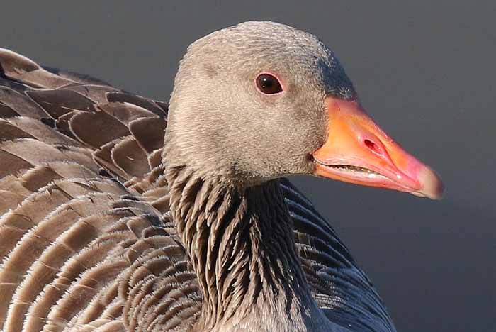 Typische Kennzeichen der Graugans sind die auffällig helle, bräunlichgraue Gefiederfärbung, die besonders im Flug auffallenden hellgrauen Vorderflügel und die schwarzen Flecken auf der Bauchseite. Auch die blassrosa Färbung der Beine und der kräftige orangegelbe bis rosarote Schnabel sind gute Erkennungsmerkmale. Die Geschlechter unterscheiden sich äußerlich nicht, ausgewachsene Jungvögel kann man aber an der verhornten dunklen Schnabelspitze erkennen. Mit einer Flügelspannweite von bis zu 180 Zentimeter und einem Gewicht von bis zu 4 Kilogramm ist die Graugans schon eine wirklich imposante Vogelart unserer Gewässer.